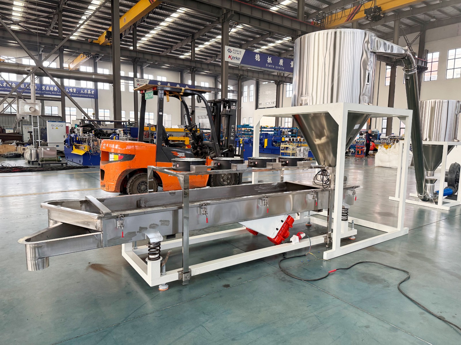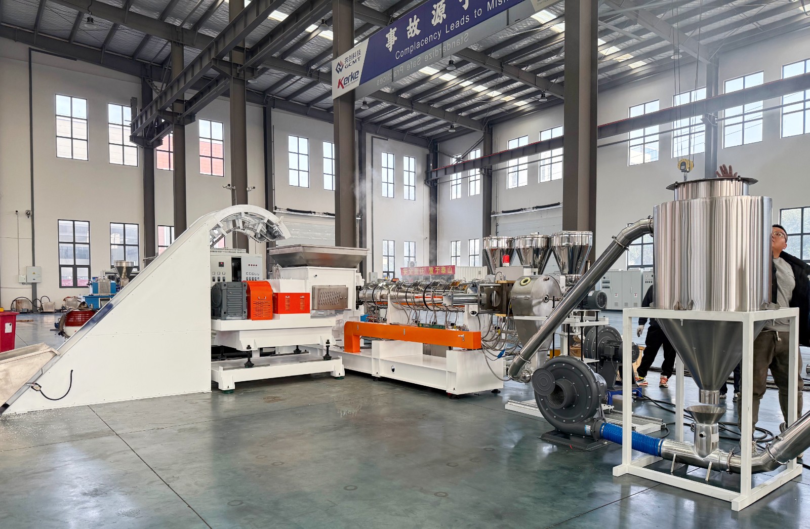 減速箱采用硬齒面、高扭矩設計,運行平穩無噪音,螺桿根據物料特性特殊設計,螺桿和機筒采用優質氮化鋼或雙合金材質,大大增加設備使用壽命。機筒上采用真空排氣或自然排氣口的設計,能在生產過程中將水分,廢氣排走,使出料更穩定,顆粒更結實,成品顆粒外觀更漂亮。