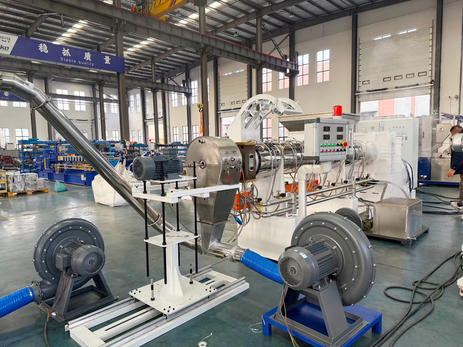 典型應用:單螺桿擠出機主要用于廢舊塑料回收造粒,如:破碎料、薄膜、廢絲、水口料等。